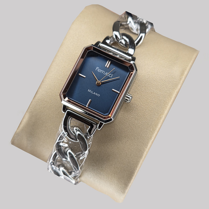 ساعت زنانه فروچی مدل FERRUCCI FC03494-06 با طراحی شیک و مدرن، یک انتخاب عالی برای خانم هایی است که به دنبال ساعتی با عملکرد دقیق و استایل جذاب هستند. این ساعت دارای موتور کوارتز با دقت بالا و مکانیزم باتری است که عملکردی بدون نیاز به نگهداری زیاد را تضمین میکند. قاب و بند استیل ضدزنگ، ظاهری زیبا و استحکام بالایی را به ساعت میبخشد. شیشه معدنی مقاوم در برابر خش و مقاومت در برابر آب تا 3ATM، این مدل را برای استفاده روزمره و موقعیتهای نیمهرسمی ایدهآل میکند. طراحی ساده و در عین حال شیک این ساعت، آن را به گزینهای مناسب برای خانم های خوشسلیقه و شیکپوش تبدیل کرده است.