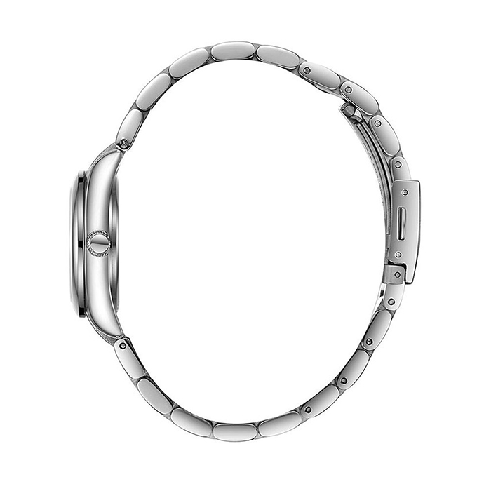صفحهی گرد با چیدمان خلوت و خوانا، همراه با رنگبندی نقرهای درخشان، به این ساعت جلوهای زنانه و مدرن میدهد. قفل کلاسیک، بند استیل صیقلی و ابعاد جمعوجور، همه در راستای راحتی و زیبایی طراحی شدهاند.