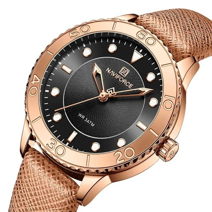ساعت زنانه نیوی فورس مدل NAVIFORCE NF5020 با طراحی مدرن، موتور کوارتز ژاپنی و بند چرم بادوام، انتخابی شایسته برای بانوان شیکپوش است. مشخصات این محصول را در جدول زیر مشاهده کنید.
