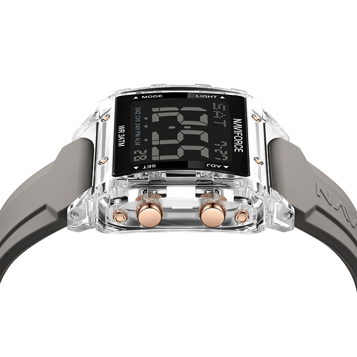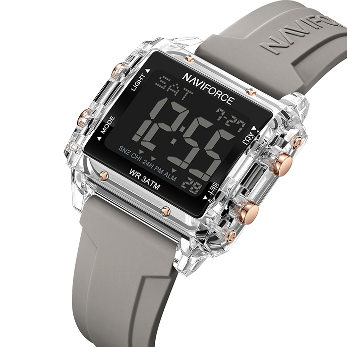 ساعت زنانه نیویفورس مدل NAVIFORCE NF7101 با قاب شفاف مربعی، بند سیلیکونی و نمایشگر دیجیتال، دارای عملکردهای مانند نمایش زمان، تاریخ، آلارم و شمارش معکوس انتخابی مناسب برای استایلهای مدرن و ورزشی. مشخصات این محصول را در جدول زیر مشاهده کنید.