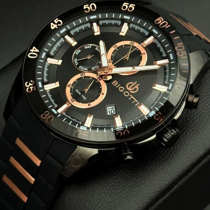 ساعت مردانه بیگوتی مدل BIGOTTI BG.1.10399-3 با طراحی سه موتوره دوئل تایم، گزینهای عالی برای آقایانی است که به دنبال عملکرد حرفهای و استایل منحصربهفرد هستند. این مدل با قاب استیل ضد زنگ و بند رابر مقاوم، ترکیبی از دوام و راحتی را ارائه میدهد.
