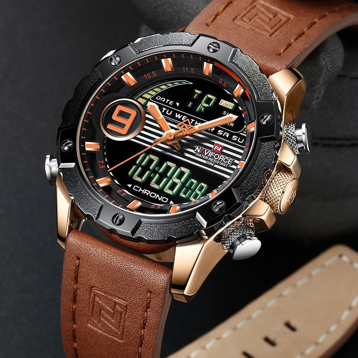 ساعت مردانه نیوی فورس مدل NAVIFORCE NF9146M با موتور آنالوگ و دیجیتال، بند چرم و صفحه چندکاره، انتخابی عالی برای آقایان است. مشخصات این محصول را در جدول زیر مشاهده کنید.
