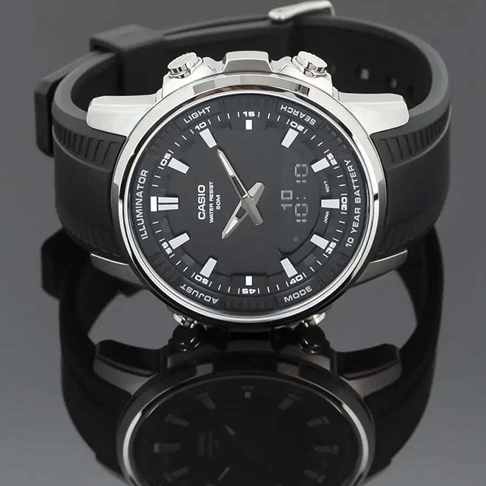 ساعت مردانه کاسیو مدل CASIO AMW-880-1AVDF با طراحی منحصربهفرد و ترکیب نمایشگر آنالوگ و دیجیتال، گزینهای ایدهآل برای آقایانی است که به دنبال یک ساعت کلاسیک و مدرن بهطور همزمان هستند. این مدل دارای بدنه استیل ضدزنگ و بند رابر بوده که دوام و استحکام بالایی را تضمین میکند. علاوه بر طراحی زیبا، قابلیتهایی مانند نمایش تاریخ، کرنومتر، تایمر، آلارم و ساعت جهانی از ویژگیهای کاربردی این ساعت محسوب میشوند. مقاومت در برابر آب تا 50 متر امکان استفاده در شرایط مختلف، از جمله شنا را فراهم کرده است.